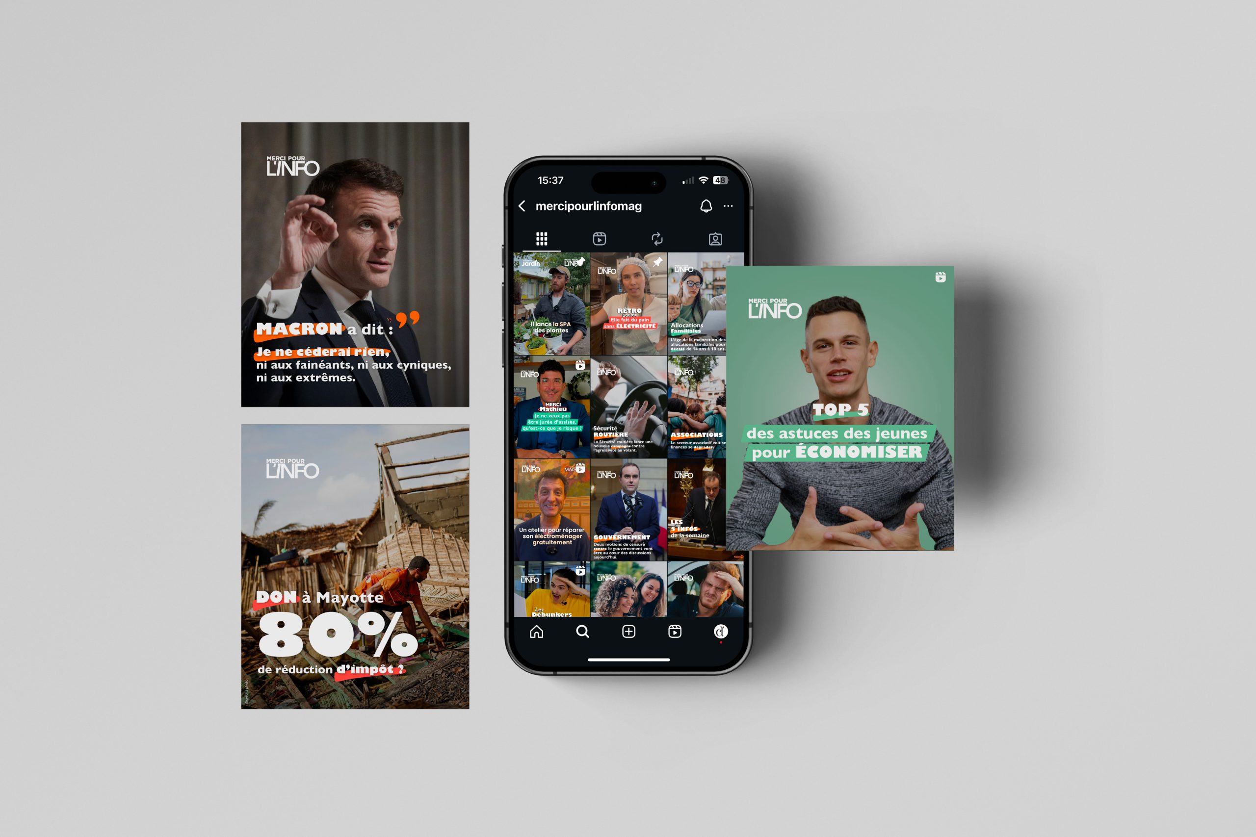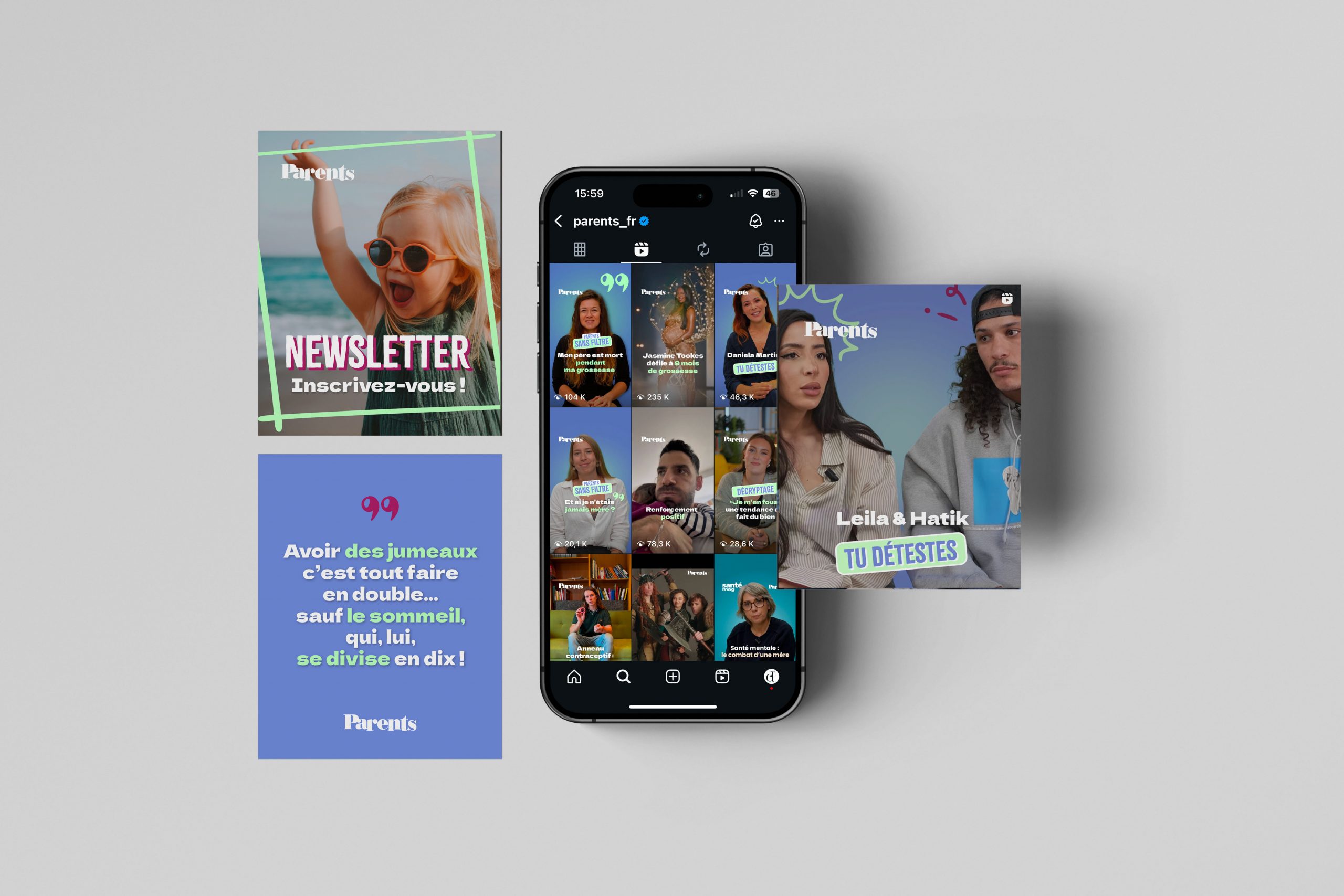 Création des chartes graphiques social media pour les marques Parents, WE DEMAIN, Maison Créative et Merci pour l’info.