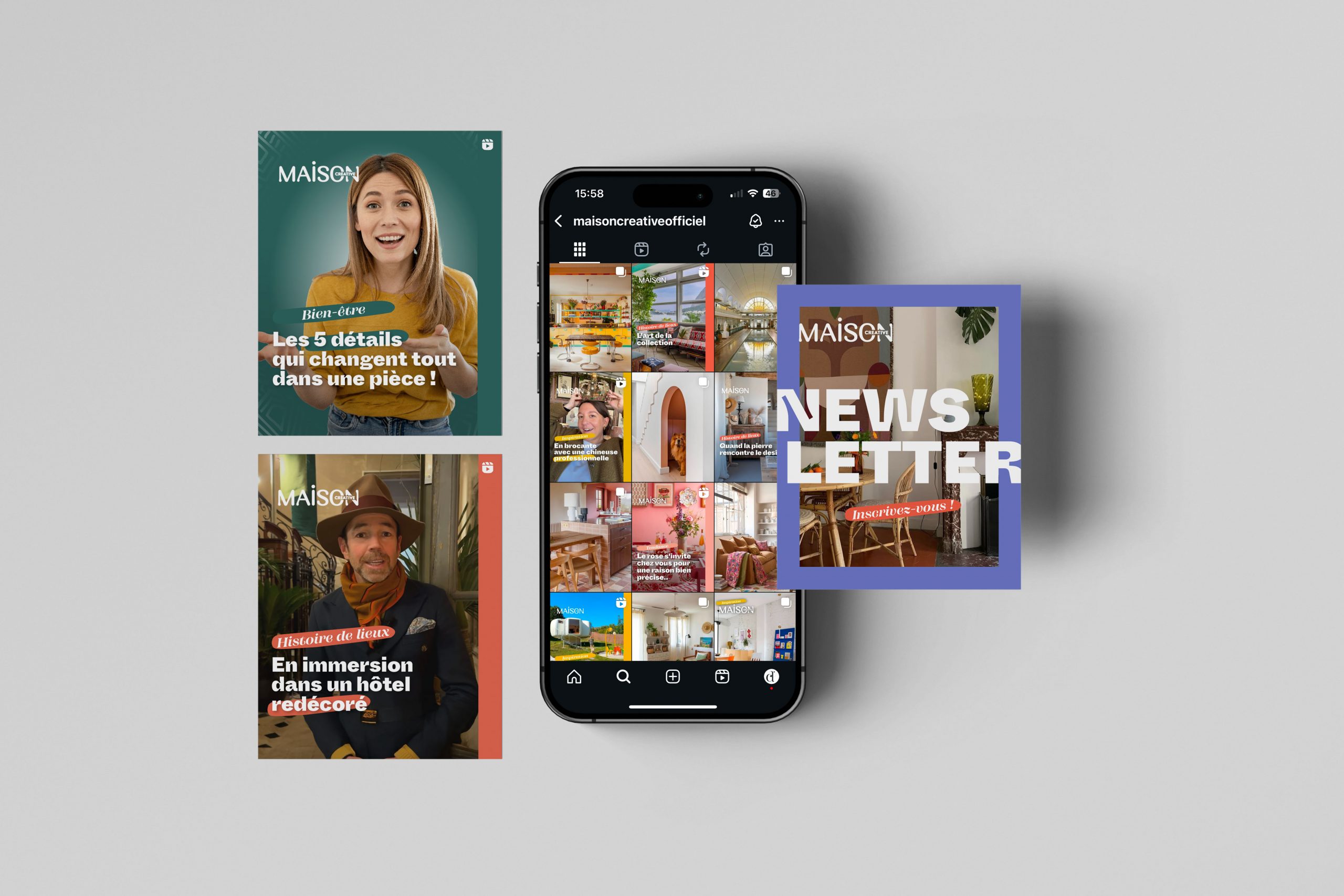 Définition des codes visuels (typographies, couleurs, iconos, pictos…) des posts fixes et vidéos pour harmoniser et moderniser la communication du groupe sur les réseaux.